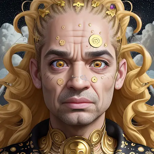 over 2 years ago Mistic genius in trance, hair made entirely of golden stickers, mistery expresive eyes, small nose with wart, wrinkles, evil expression, flying on drake, divine,8k,high quality , hiperrealistic,full moon, stars, clouds,Evil face,steam Gandoriel 0 51