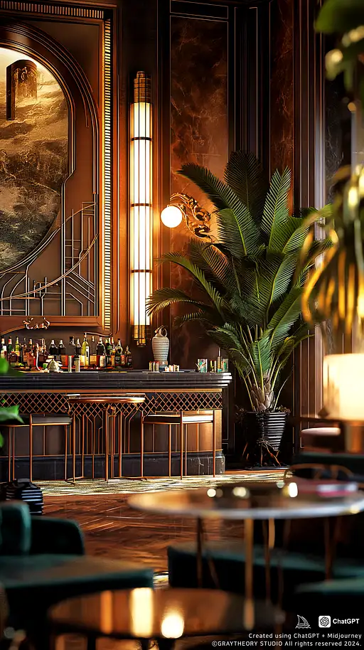 over 1 year ago cinematic, candid shot, a luxurious Art Deco lounge, bold geometric patterns and metallic finishes, an angle shot that emphasizes the opulent detailing, 8K, light effect --ar 9:16 --stylize 120 Grayve PRO 4 150