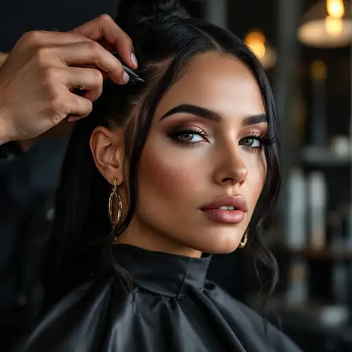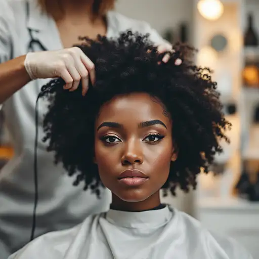 6 months ago ULTRA REALISTIC IMAGE OF A BLACK HAIRDRESSED CUTTINGF A BLACK FEMAKE CLIENTS HAIR IN BEAUTY SALON HIGHENDHEATHEN 0 12