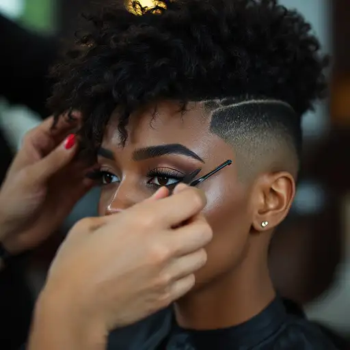 6 months ago ULTRA REALISTIC IMAGE OF A BLACK HAIRDRESSED CUTTINGF A BLACK FEMAKE CLIENTS HAIR IN BEAUTY SALON HIGHENDHEATHEN 0 9