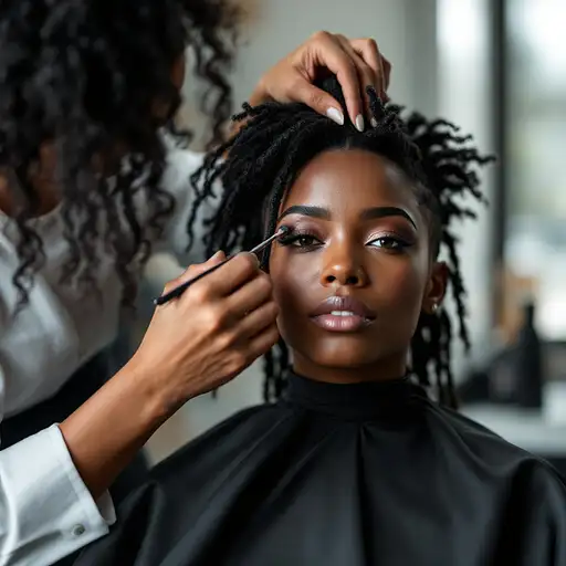 6 months ago ULTRA REALISTIC IMAGE OF A BLACK HAIRDRESSER DYING A BLACK FEMAKE CLIENTS HAIR IN BEAUTY SALON HIGHENDHEATHEN 0 10
