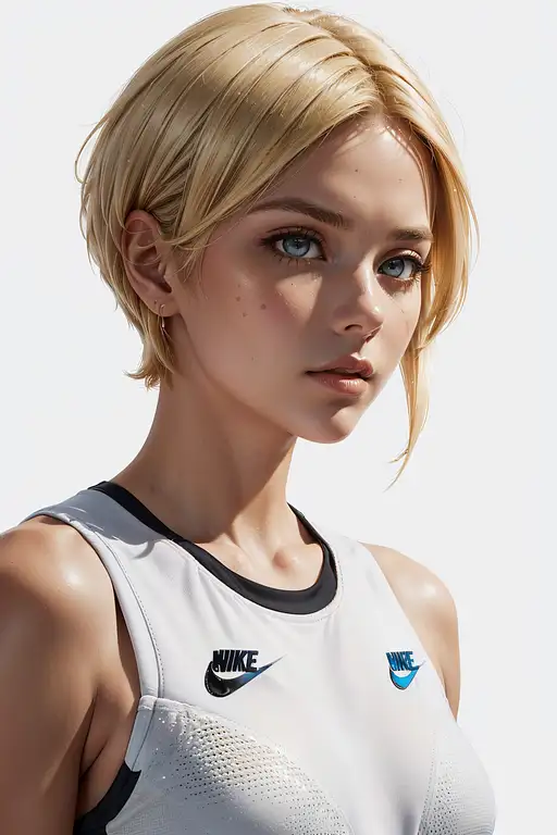 over 1 year ago (8k,ultra hd,high resolution,extreme detail,octane,render,best quality,masterpiece,dynamic angle, highest detailed:1.2),1girl,(intense blonde short hair:1.2),beautiful eyes,wearing sports wear,fit body,(nike logo:1.2),(white sneakers:1.2),looking at viewer,(abstract background:1.2),(ultra high resolution textures:1.2),(official art:1.2) IceB 0 90