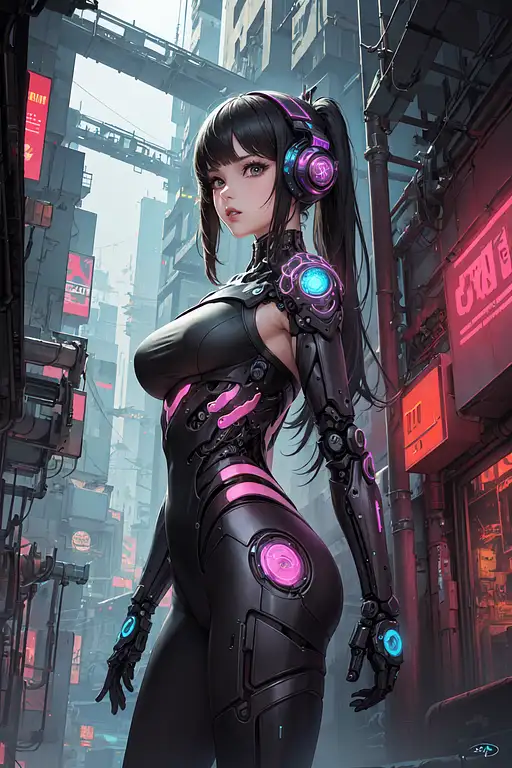 over 1 year ago (masterpiece, top quality, best quality, official art, beautiful and aesthetic:1.2), (1girl), extreme detailed,(fractal art:1.3),colorful,highest detailed, (mechanical girl:1.3),(cyberpunk background:1.3) IceB 0 82