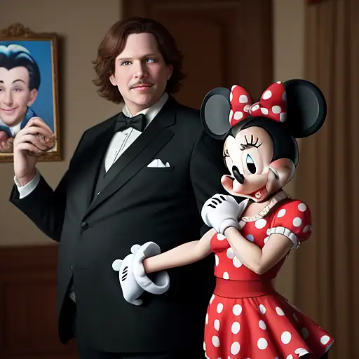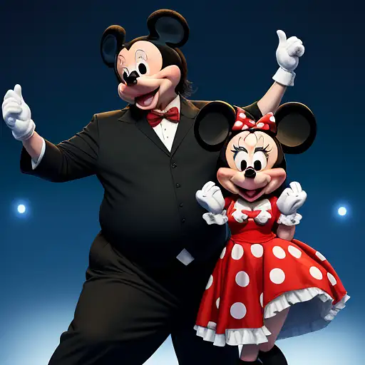 over 1 year ago Mickey Mouse as Javier Milei, Fat, and 55 years old, dancing with Minnie. Photorealistic, high details, with a picture of walt disney, Ilustrapop1988 0 36