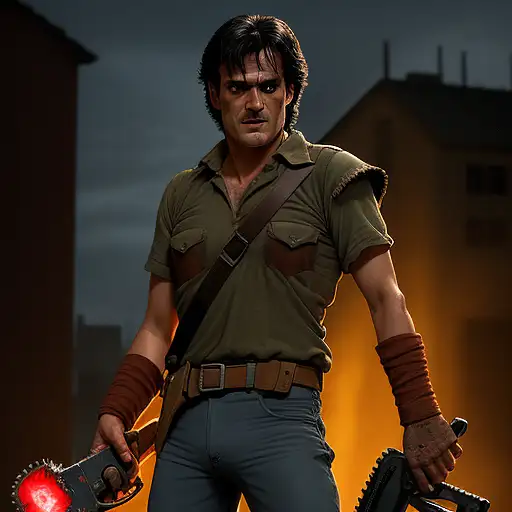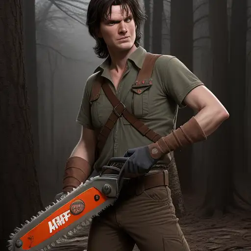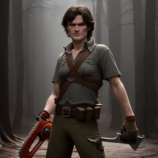 over 1 year ago Javier Mile as Ash, from Army Of Darkness, the Sam Raimi film, his left arm is replaced with a chainsaw, photo realistic, Ilustrapop1988 0 43