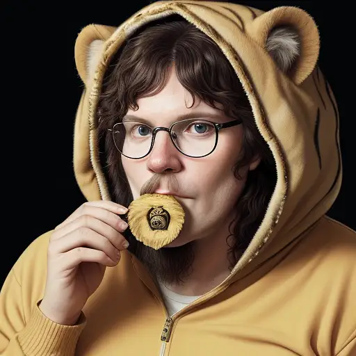over 1 year ago javier milei fat, 55 years old, with eyeglasses, using a lion cover, eating a dollar Ilustrapop1988 0 41
