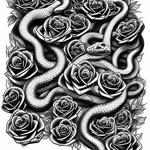 2 years ago snakes, tattoo sketch, smooth transitions, black patterns, more details, more flowers, pions, roses, black and white colors JazzAlmaz 0 75