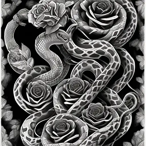2 years ago snakes with flowers, tattoo sketch, smooth transitions, black patterns, more details, more flowers, pions, roses, High resolution JazzAlmaz 0 69