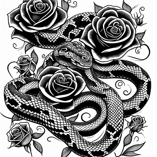 2 years ago white background, black and white, snake around flowers, tattoo sketch, smooth transitions, black patterns, many flowers, peonies, roses, center image, does not go out of frame JazzAlmaz 0 78