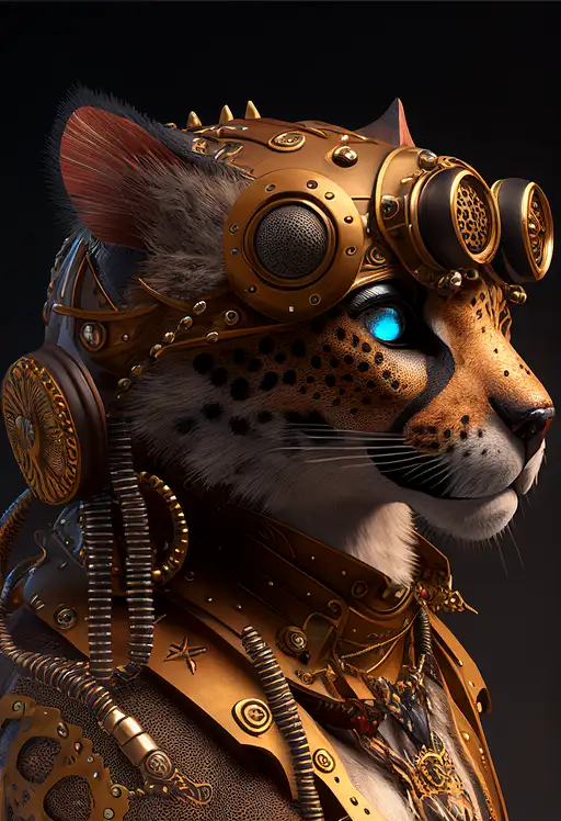 over 2 years ago steampunk cheetah model, fortnite style, studio lighting, 3D octane render, hyper realistic, ultra detailed, 8k --ar 2:3 --q 2 Kush 5 610