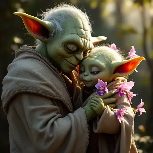 8 months ago (yoda) in love, holding (orchids:1.1), 8k, hyperrealistic, highly detailed, digital painting, 8k, cinematic lighting Lars1970 0 33