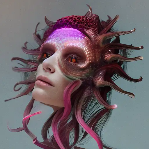 2 years ago Goddess close-up portrait ribcagel. jellyfish phoenix head, nautilus, orchid, skull, betta fish, bioluminiscent creatures, intricate artwork . octane render, trending on artstation,t symmetrical artwork. cinematic, hyper realism, high detail, octane render, 8k Laserdad 0 56