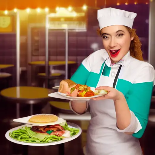 over 2 years ago waitress serving food in a 80's looking diner, hyper realistic, photo realistic, high resolution, studio photoshoot, depth of field --v5 Laserdad 0 120