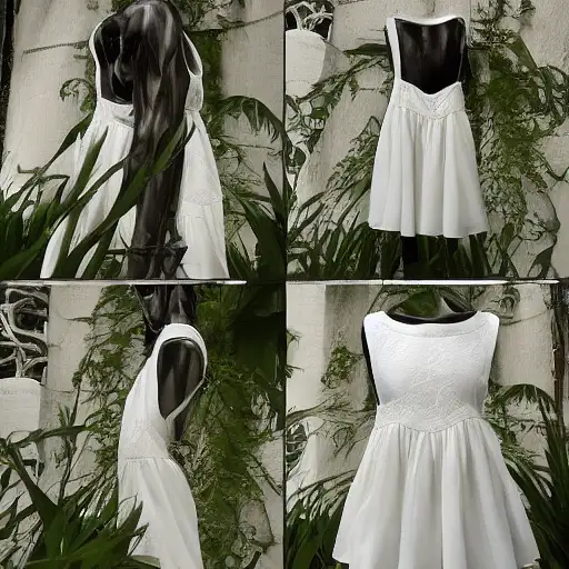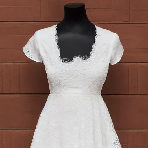center front display photo of a white dress with black lace trimming, show all, center display, front side view, medium shot, very high resolution, very beautiful, super detailed. --n (((face))),(((deformed))),(((stretched))),(((back side))),(((back))),(((black person))),(((person))),(fashion model),(models),((fonts)),(((pop font watermark))),(((watermark))),(((watermarker))), (((hanger))), (((human))), (((nearing shot))), (((super close up))), (((close up))), (((close up shots))),(((fabric photo))),(colored background),(partial view),(detail view),(((partial))),(microscope view), (wearing on),(mannequin),(drawing) --l 5.0