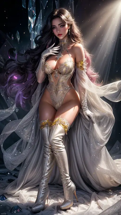over 1 year ago 8 k Photo of an erotic, very young and magical woman fully naked, erotic, dynamic light, ultra-realistic, anime style, innocent , stocking overknee boots and overarm gloves, 8 k, ultra-detailed, in a crystal world ,perfect vagina , very beautiful body and face, very seductive erotic make-up and coloured fingernails, different modelpositions , masterpiece, award winning photography, ultrarealistic, photorealistic, nipples and vagina visible MNRoy 5 510