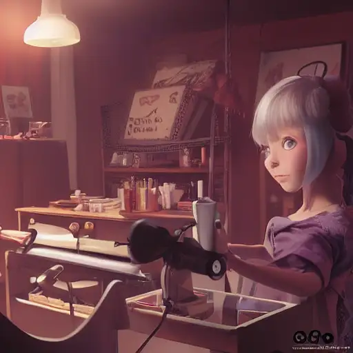 almost 3 years ago Portrait d'un salon de coiffure, Éclairage cinématographique, Artstation, 4k, Ultra-réaliste, Unreal Engine 5, Cinématique, Chef-d'œuvre, Art par Studio Ghibli, Oeuvre complexe par John William Turner MOKHA 0 140