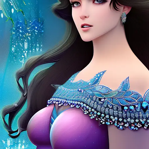 over 2 years ago Woman with black hair, in a dress of ice flowers, a beautiful crown on her head, detailed face, detailed skin, front, background frozen forest, cover, unzoom, choker, hyperdetailed painting, luminism, Bar lighting, complex, 4k resolution concept art portrait by Greg Rutkowski, Artgerm, WLOP, Alphonse Mucha, little fusion pojatti realistic goth, fractal isometrics details bioluminescens : a stunning realistic photograph 30 years Magnae 0 77