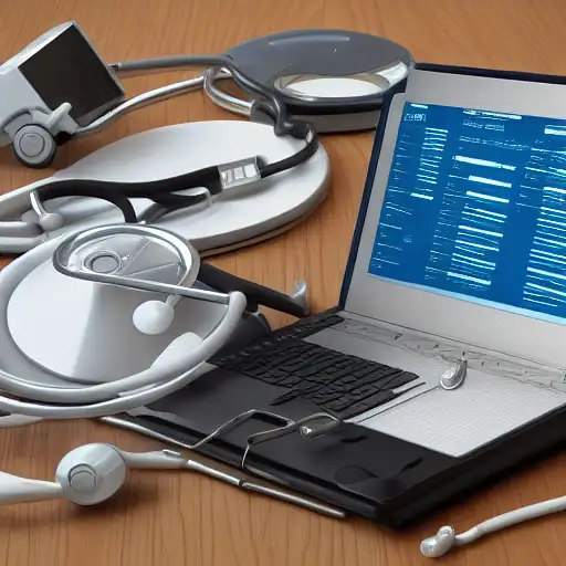 over 2 years ago Hyperrealistic image of a computer with a well-defined keyboard, screen with graphics of access to networks and medical providers, accessories of medical instruments Magnae 0 53