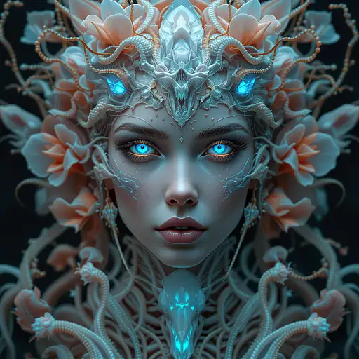 7 months ago Goddess close-up portrait ribcagel. jellyfish phoenix head, nautilus, orchid, skull, betta fish, bioluminiscent creatures, intricate artwork . octane render, trending on artstation,t symmetrical artwork. cinematic, hyper realism, high detail, octane render, 8k Mandrake 0 39
