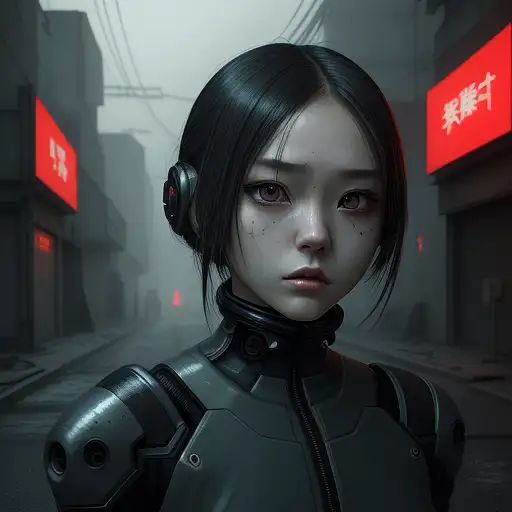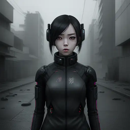 almost 2 years ago create image of woman, face perfect expressive teenager, style Japanese female android in dystopian attire on a desolate street, overcast, ruins, cinematic, 32k, --ar 9:16 --niji 5 --style expressive Marceloexav 0 17