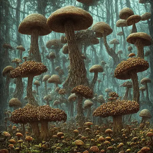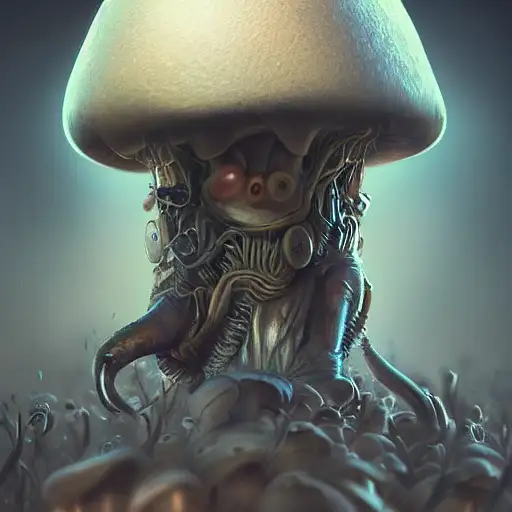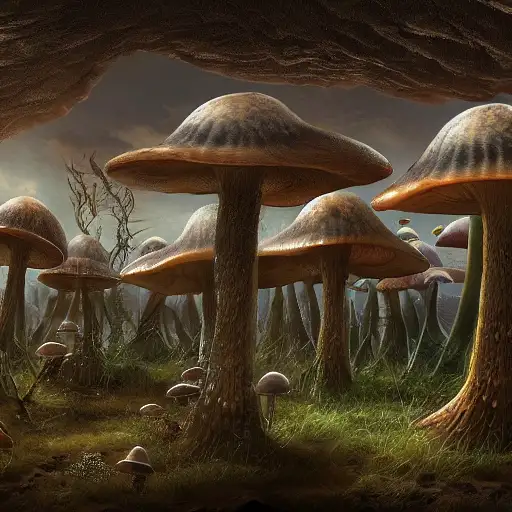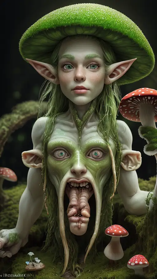 mushroom people, intricate, realistic face, detailed portrait, detailed face, green outfit, insanely detailed, vivid color, trending on artstation, 4k, hyper realistic, focused, extreme details, cinematic, masterpiece, concept art by Katsuhiro Otomo and studio ghibli, amidst the lost valley, rock arcs, lush vegetation, exotic forrest and plants, fly agaric mushrooms, landscape, alex ross, eddie mendoza, raphael lacoste, sebastian ludke, concept art, matte painting, highly detailed, rule of thirds, dynamic lighting, cinematic, detailed, magnificiant landscape, denoised, centerd