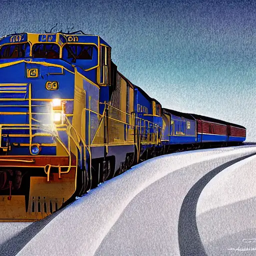 over 2 years ago realistic drawing of an emd gp38-2 locomotive machine, snowy landscape, blue sky, crossroads Missael666 0 56