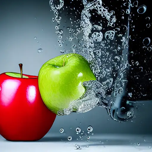 over 2 years ago hyper realistic photograph of an gren apple falling into a glass of mineral water, many bubbles, white background, producing swirls Missael666 0 40
