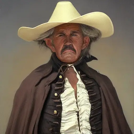 over 2 years ago High resolution photography of a ultra realistican old cowboy in 18th century, beautiful painting with highly detailed face by tim cox, with a wide cowboy hat, which gives him a mysterious and so gloomy, he wears a long cape and poncho , which gives him an air of a lonely and carefree protagonist, Beneath the cloak he wears a white shirt and a dark brown vest, which is often covered in dust and worn due to the arid conditions of the environment, he also wears a wide belt and a pair of revolvers crossed at the waist, highlighting his role as a bounty hunter and his skill with weapons, His calm and confident demeanor, combined with his scruffy yet elegant appearance, creates an iconic and recognizable cowboy Missael666 0 51