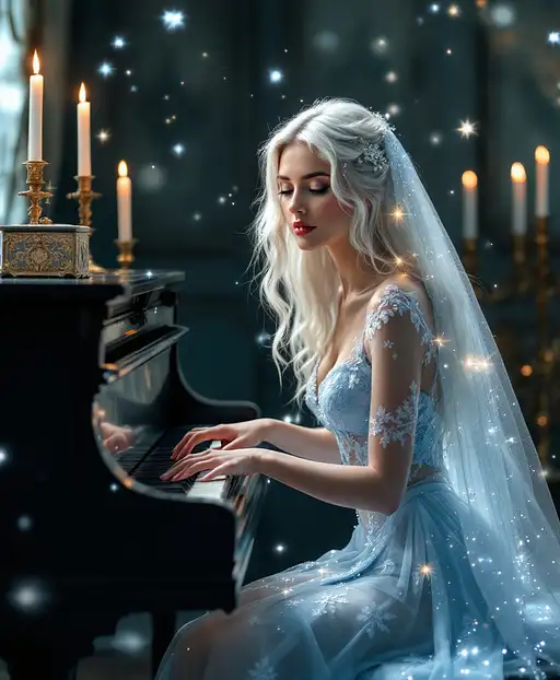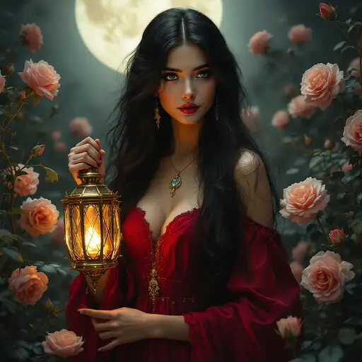 ultra-detailed oil painting:1.3, impasto:1.2, high relief texture:1.2, hyper realistic style:1.3, female:1.5 with delicate pale skin, graceful posture, back partially turned, head slightly bowed, long black wavy hair:1.3, wearing a flowing dark gown with subtle gothic lace, a sheer black veil covering her head, held by an elegant black crown, standing in a decaying overgrown garden, ancient ivy-covered stone ruins, soft mist, cinematic composition, fine soft shadows over her profile, muted softly textured artistic background, rich painterly brush strokes, melancholic and mysterious mood, gothic romanticism, inspired by Edgar Allan Poe’s The Fall of the House of Usher, full view of the mansion in the background, mansion architecture highly detailed and crisp, panoramic scene capturing both character and environment, masterpiece, 8K ultra HD, aspect ratio 16:9.