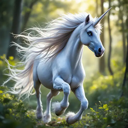 8 months ago a beautiful flawless half unicorn woman with long hair and pretty shiny blue eyes running in the forest freely MrGoodstuff 0 13