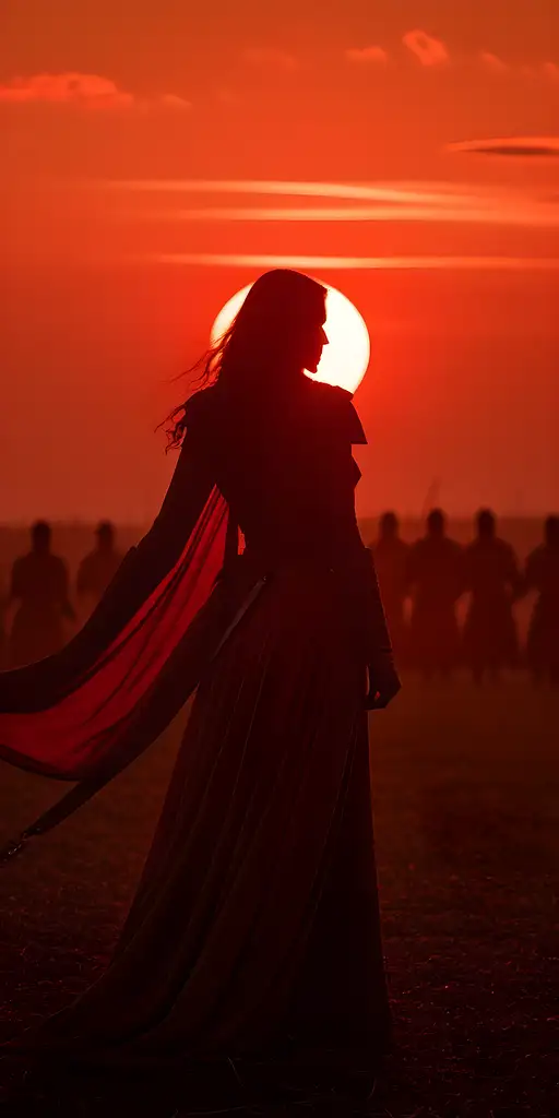 over 1 year ago Back view of an assassin woman on a battle field covered in corpses, red sunset sky in the background, lone figure standing amidst the carnage, tattered clothing, worn weaponry, shrouded in mystery, dramatic lighting, painterly treatment, moody atmosphere, by Brom and Donato Giancola MrHuisClos21 0 45