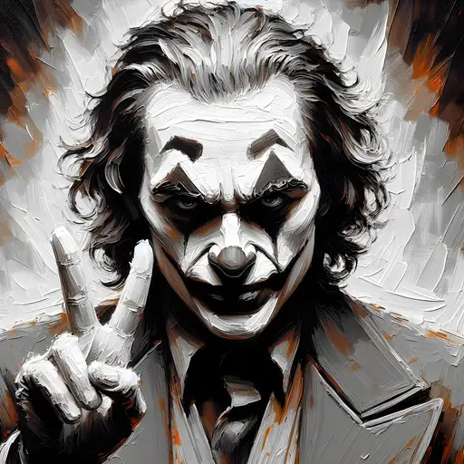 1 year ago The Joker, impasto technique, oil painting, contemporary era, primarily monochromatic with accents of orange and white. MrHuisClos21 1 110