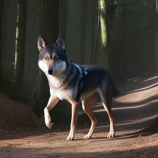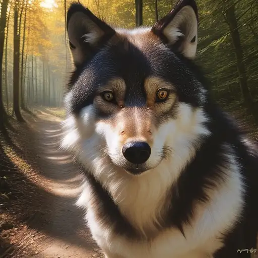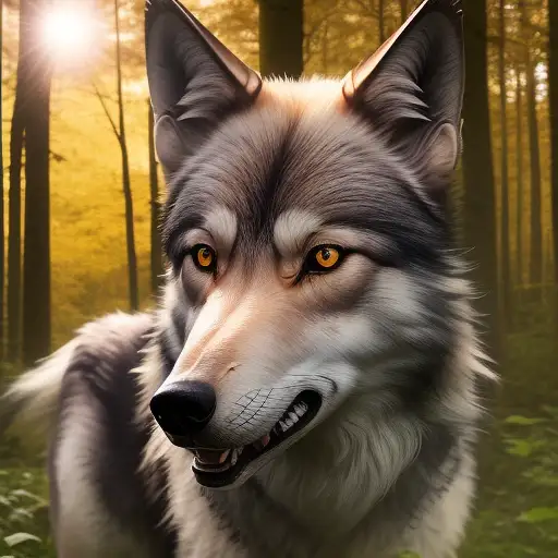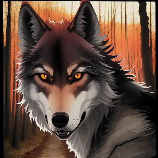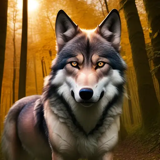 11 months ago ein junger wolf, verirrt im wald, sonnenaufgang, sieht mit süßen augen in die kamera, manga style, Nycha 0 30