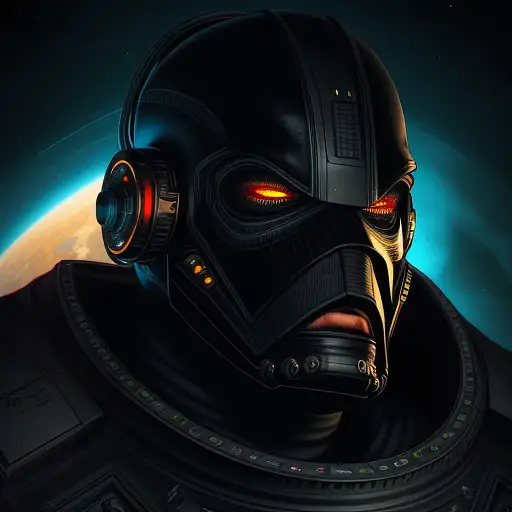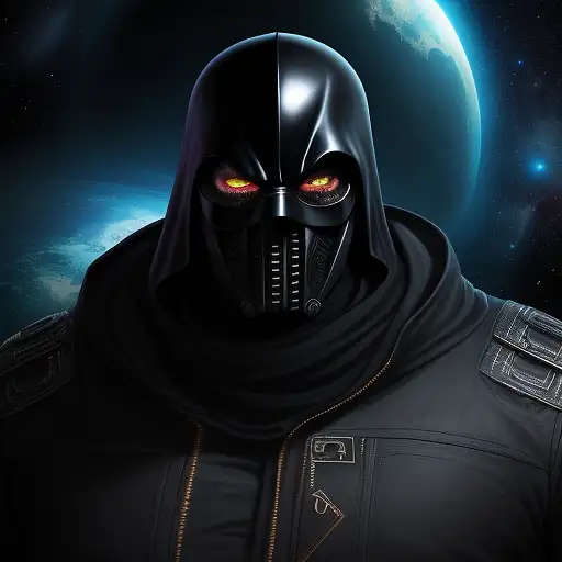 over 1 year ago high quality foto of a big man, black mask, dark looking eyes, in space, cyperpunk, Nycha 1 44