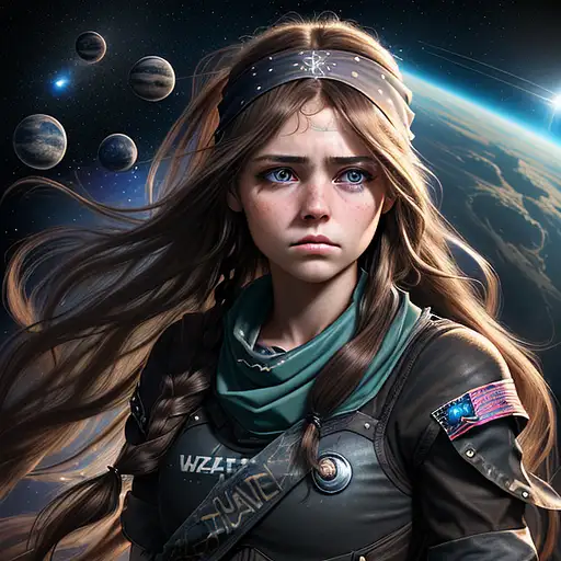 over 1 year ago ultra realistic picture of a sad young woman, long bunte hair, badass, 8k, prinzessin, darkbrown eyes, space, fantasy, waring a bandana Nycha 1 28