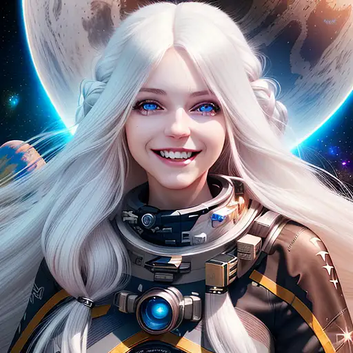 over 1 year ago ultra realistic picture of a happy young woman, long white hair, badass, 8k, prinzessin, darkbrown eyes, space, fantasy, Nycha 1 33