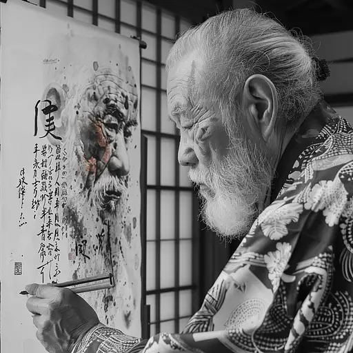 1 year ago Minimalist line drawing of traditional Japanese elderly man::4 Wearing kimono, serene expression::3 Simple black lines on white background::3 Artistic brushstroke-like style::2 Symbolizing Japanese culture and wisdom::1 --s 250 OHUNE 0 72
