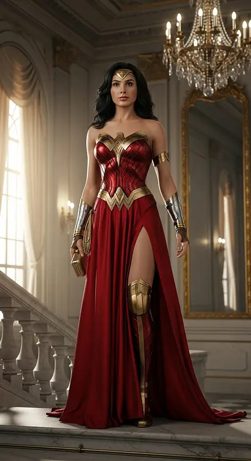 15 days ago full body Ultra-realistic 4K portrait of a woman styled as a princess, long black hair, green eyes, red lips. She wears a rhinestone gown with a deep V-neck. Captured in a photo studio with soft lighting, Canon EOS R5, 85mm lens, shallow depth of field, natural skin texture, realistic shadows. OperatorLogicAI 0 26