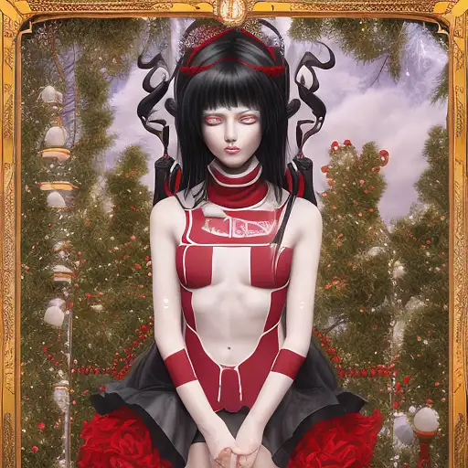 over 2 years ago ultra detailed 8k cg, woman standing in full height, wearing black tights on her legs, wearing a black turtleneck, long black hair, wearing a black bandage over her eyes, red horns on her head, red wings on her back, remove naked Orkraut 0 27