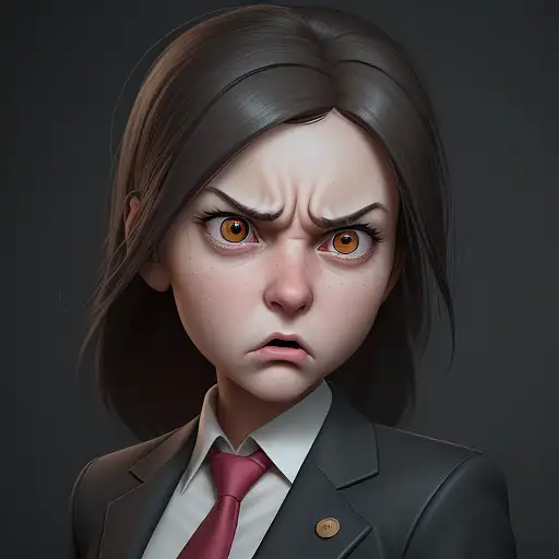 over 1 year ago a young girl in a business suit with a very angry expression, in the style of unreal engine 5, cartoonish caricatures, i can't believe how beautiful this is, animated gifs, life-like avian illustrations, close-up, soft, romantic scenes --ar 35:64 --stylize 750 --v 6 PeterVanilla 0 52
