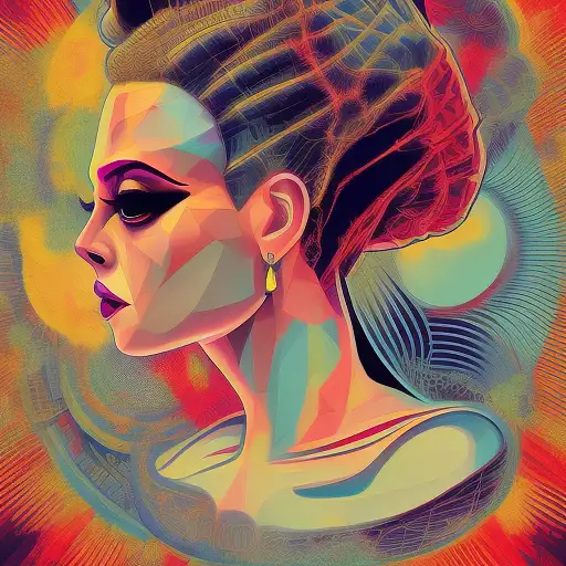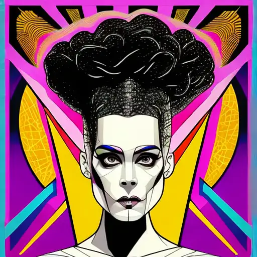 almost 3 years ago geometric abstract portrait of Bride of Frankenstein, bright vibrant colorful, shepard fairey --aspect 3:6 Pixometry 8 550