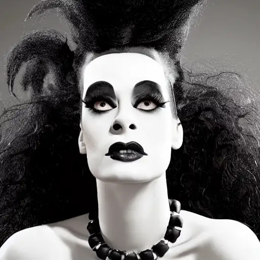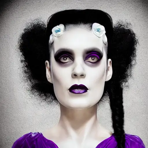almost 3 years ago a vibrant professional studio portrait photography of bride of frankenstein, white hairs, goth, attractive, friendly, casual, delightful, intricate, gorgeous, female, piercing purple eyes, wears a silver necklace, femme fatale, nouveau, curated collection, annie leibovitz, nikon, award winning, breathtaking, groundbreaking, superb, outstanding, lensculture portrait awards, photoshopped, dramatic lighting, 8 k, hi res Pixometry 0 160