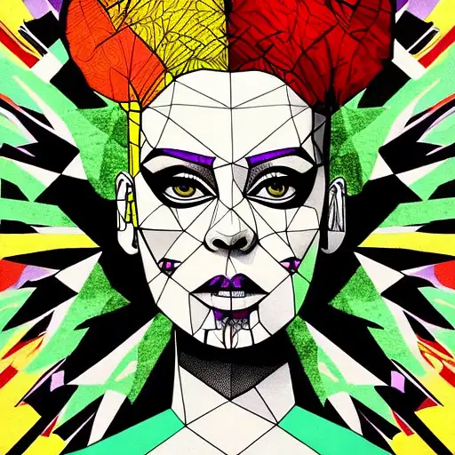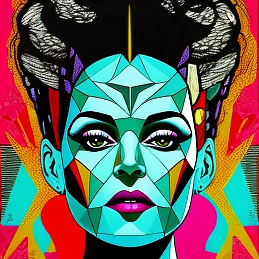 almost 3 years ago geometric abstract portrait of Bride of Frankenstein, bright vibrant colorful, shepard fairey --aspect 3:6 Pixometry 0 98