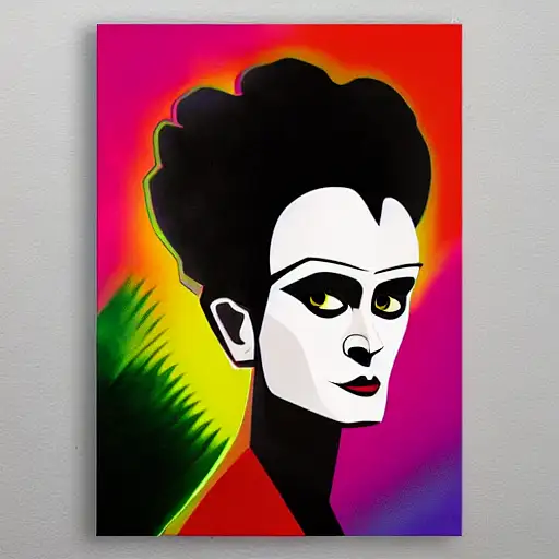almost 3 years ago geometric abstract portrait of Bride of Frankenstein, bright vibrant colorful, poster art, shephard fairey --aspect 3:6 Pixometry 0 63