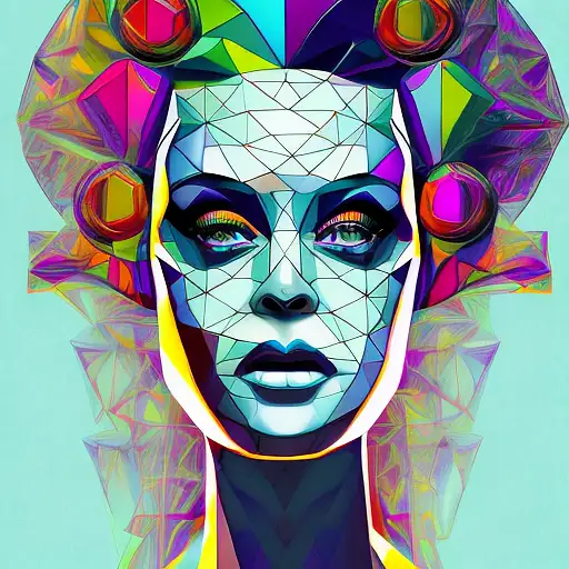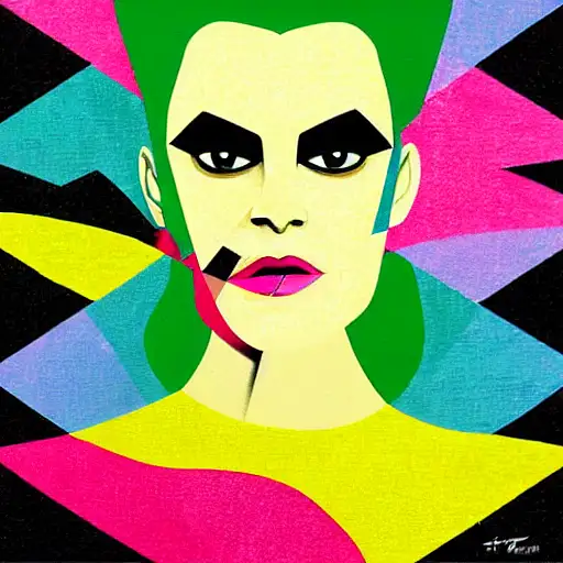 almost 3 years ago geometric abstract portrait of Bride of Frankenstein, bright vibrant colorful, poster art, shephard fairey --aspect 3:4 Pixometry 0 97