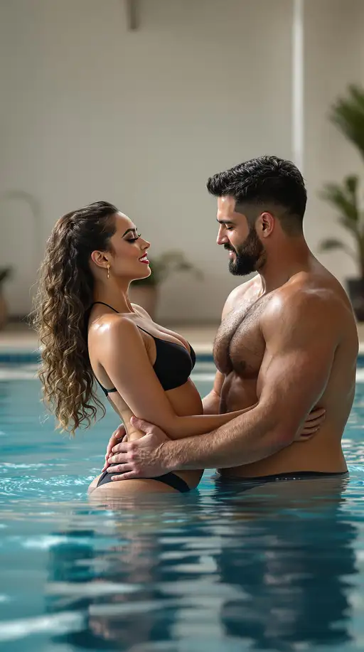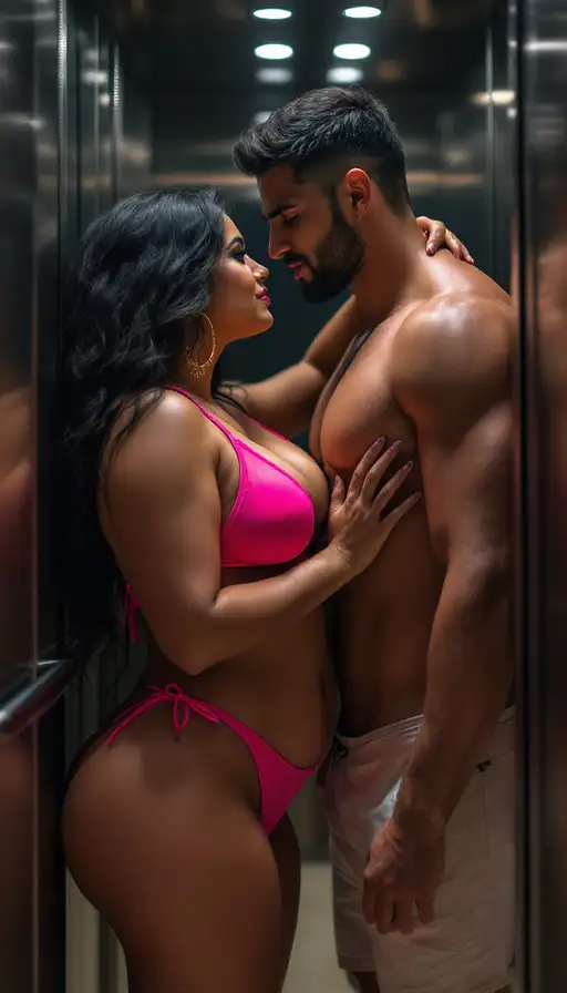 Model = ethnicity Indian , Gender Female/ Woman , Hair black wavy , hair length shoulder length, hairstyle layered, eyes brown , body shape hourglass , plus size with flat stomach , Breast size 44 F , waist size 30 , Hips size 50 , lowe hip size 35 , skin colour fair bright glowing, ass butt round pear shaped perfectly curved fluffy augmented with glute folds , breast with deep cleavage pushed up , well defined muscular shredded shaped shoulder arms biceps forearms thighs calves back , full face , full body length picture, full body , full length wide angle shot , sexy smile , no bra strings cute full view with exposed bikini naked transparent matching see through tiny bra and panty , capturing all delicate and intricate contours and features of face body and hair , realistic photography,