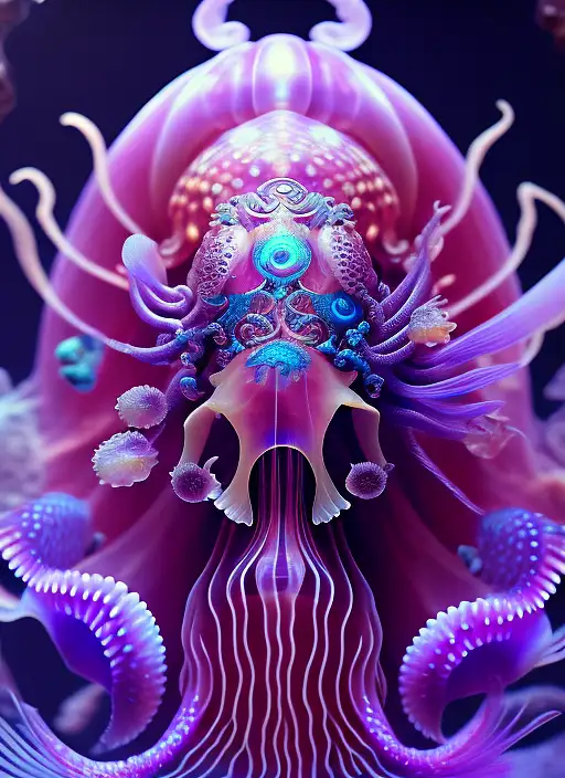 almost 2 years ago Goddess close-up portrait ribcagel. jellyfish phoenix head, nautilus, orchid, skull, betta fish, bioluminiscent creatures, intricate artwork . octane render, trending on artstation,t symmetrical artwork. cinematic, hyper realism, high detail, octane render, 8k Prender 0 77