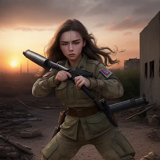 2 years ago (masterpiece, best quality, ultra-realistic, RAW photo, detailed skin, 8k UHD, high quality:1.2), digital style painting photo of a young beautiful soldier woman, attacking stance, long hair, dirty military attire and gear, sunset, WW2, war city background, ruin city, high saturation, highly detailed, digital art, film grain, movie poster style <lora:add-detail-xl:5> Pressy 0 41