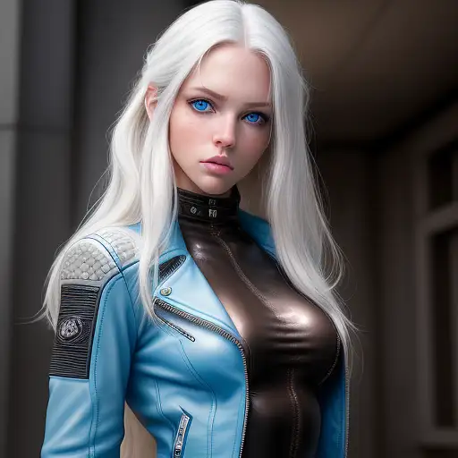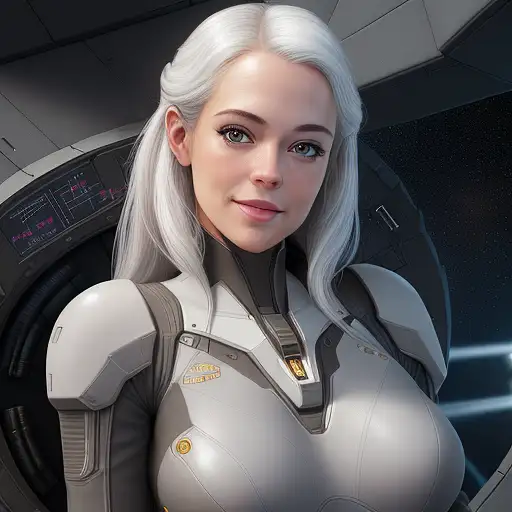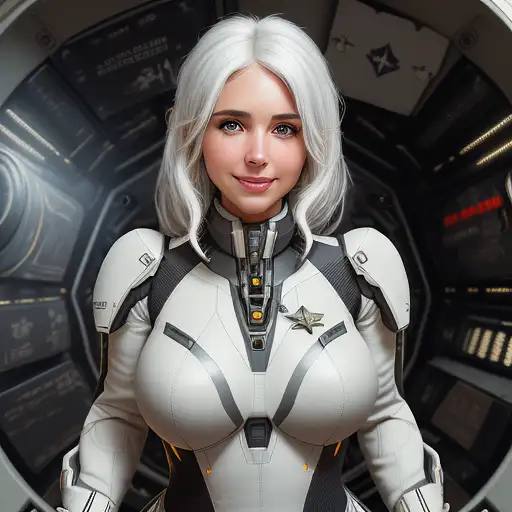sfw, best quality, ultra high res, ultra-detailed face and eyes, detailed body, detailed clothes, (photorealistic:1. 4), seven of nine, standing inside Anvil Carrack of Star Citizen, detailed background, professional light, (light on the face), white hair, white leather boots, smiling , perfect face, thick full lips, deep symmetrical eyes, feminine and muscular, unique beauty, long white hair, detailed blue eyes, narrow waist, normal sized tits, feminine, cute, tanned, detailed skin, rocker girl , leather jacket, leather pants, detailed boots, biker boots, beautiful natural lighting, shallow depth of field, photorealism, volumetric lighting, Ultra HD, using a professional DSLR camera, smiling, blush, light blue eyes, professional light, (light on the face)