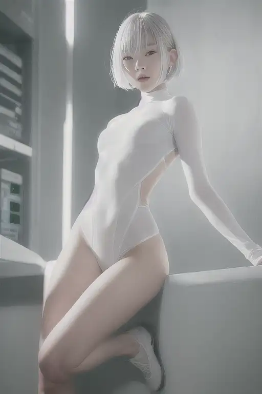 over 2 years ago (1girl), (full body), Beautiful Korean woman, kpop idol, (futuristic sci-fi bodysuit), (white hair), (Cute Loose Bob hairstyle), (red lips), (small breasts), (toned stomach), dramatic lighting, (photo realism:1.4), symmetrical eyes, realistic, sharp focus, HD, highly detailed, intricate, photography, hyperrealism, hyperrealistic, film, studio portrait, detail, 8k uhd Rachey13x 3 190